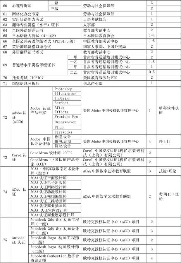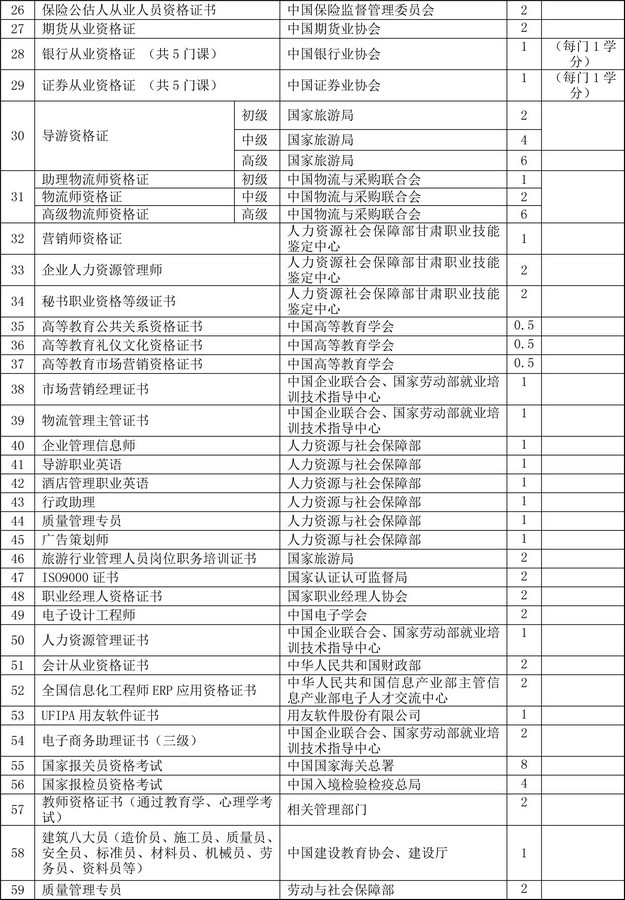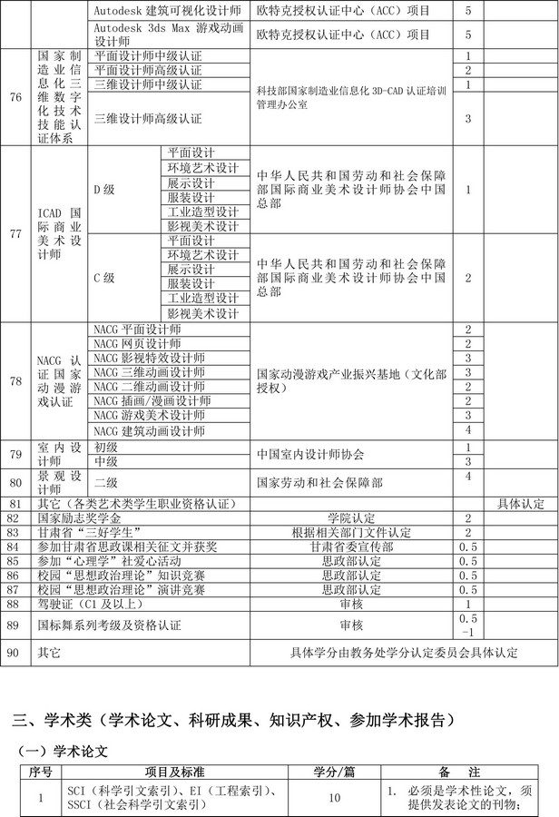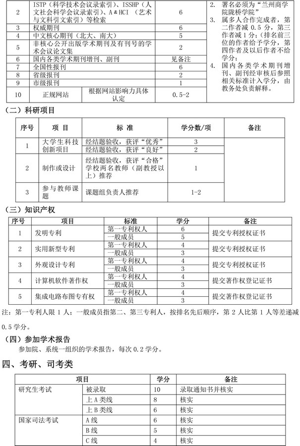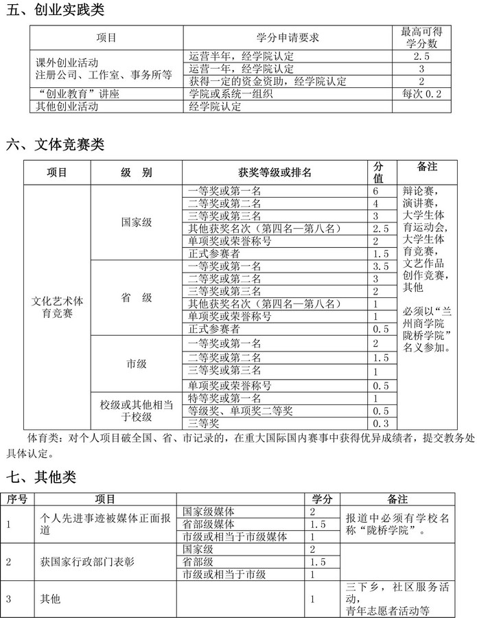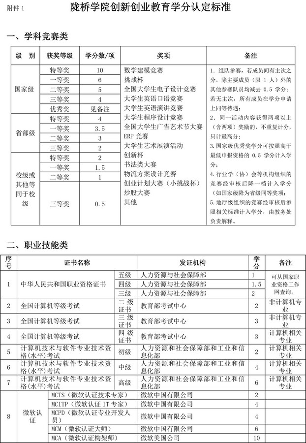 陇桥学院创新创业教育学分认定标准
