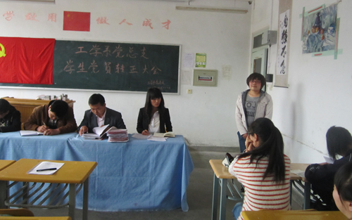 最后,工学系党总支书记常雪琴副教授做了重要讲话。她首先代表系党总支向如期转正的13位同志表示祝贺,并希望他们在今后的学习生活中一如既往的按照党员的标准严格要求自己,时时刻刻做表率、事事处处起模范。同时,常书记还对全系党员和入党积极分子提出了三点希望和要求:一是要加强理论学习,提升个人素质;二是要积极投身实践,增强综合素质;三是要明确党员义务,强化服务意识。希望同学们通过自己的不懈努力,争取早日从思想上入党,成为一名合格的共产党员。