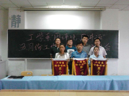 会上,工学系学生分会副主席张冠斌同学对五月份“周评比、月讲评”班级考核工作进行了汇报,党政秘书辅导员尚飞宣读了“周评比、月讲评”班级考核结果,2012信息管理与信息系统班(2)班、2012级景观建筑设计班、2012信息管理与信息系统班(1)班分获前三名。随后,系领导和老师为评比前三名的班级颁发了流动红旗。