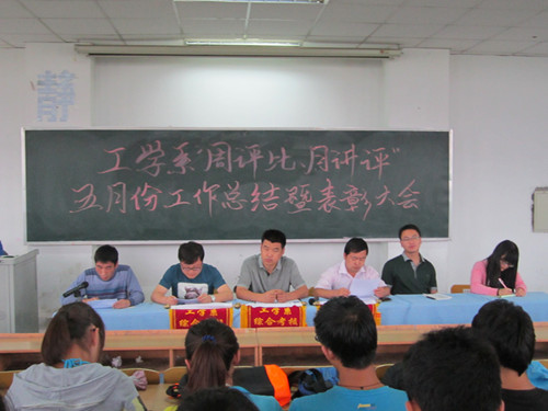 会上,工学系学生分会副主席张冠斌同学对五月份“周评比、月讲评”班级考核工作进行了汇报,党政秘书辅导员尚飞宣读了“周评比、月讲评”班级考核结果,2012信息管理与信息系统班(2)班、2012级景观建筑设计班、2012信息管理与信息系统班(1)班分获前三名。随后,系领导和老师为评比前三名的班级颁发了流动红旗。