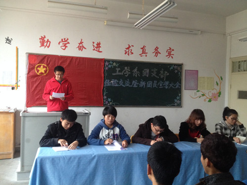 10月30日下午14:30分,工学系团总支在2号楼302教室召开团员发展暨2013级团支书经验交流会,系团总支书记张希伟老师、学生分会主席,2013级各班团支书参加了会议。会议由团总支副书记吴睿同学主持。
