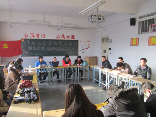 按照学院党的群众路线教育实践活动的总体安排和部署,我系教工党支部于12月17日下午召开了党的群众路线教育实践活动专题民主生活会。工学系系主任于泳海,党总支副书记刘灿帅,教学副主任田伟,党总支副书记、行政副主任李号龙及我系全体教职工共计22人参加了会议。