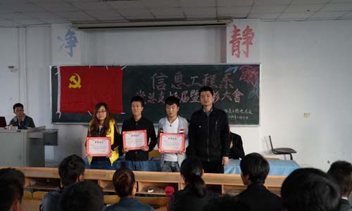 10月29日下午,我系在博学楼315教室召开了2013-2014学年党总支换届暨先进表彰大会,信息工程系主任孙力、党总支书记刘灿帅、团总支书记牛应才以及全系学生党员共计200人参加了此次大会,会议由党政秘书邓超主持。