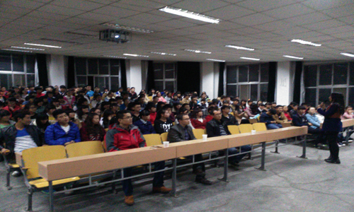 为了进一步使2014级的同学们能够更好更快地转变角色、融入集体,明确自己的人生目标,养成良好的学习习惯,制定出大学四年的人生规划和学业规划,1030日下午740,信息工程系在2号教学楼315教室召开优秀学子学习经验交流会。系副主任叶得学、团总支书记牛应才、党政秘书邓超及2014级全体同学参加了本次学习经验交流会。我系来自11级、12级和13级各专业的优秀学生代表郭文娟、张翼翔、王若凡等同学为大一新生分享了学习经验。