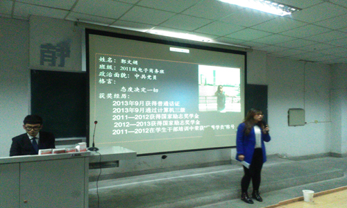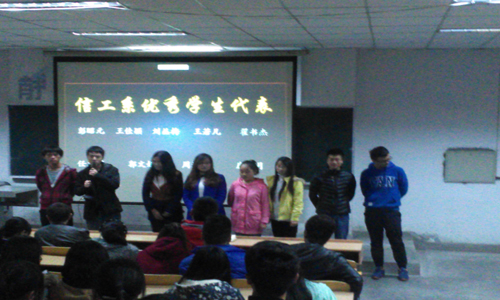 为了进一步使2014级的同学们能够更好更快地转变角色、融入集体,明确自己的人生目标,养成良好的学习习惯,制定出大学四年的人生规划和学业规划,10月30日下午7:40,信息工程系在2号教学楼315教室召开优秀学子学习经验交流会。系副主任叶得学、团总支书记牛应才、党政秘书邓超及2014级全体同学参加了本次学习经验交流会。我系来自11级、12级和13级各专业的优秀学生代表郭文娟、张翼翔、王若凡等同学为大一新生分享了学习经验。