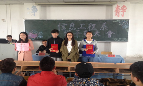 为及时总结我系团学工作,并就下一步重点工作做好部署和安排,争创我系团学工作的新局面。信息工程系团总支于4月9日中午12:15在1号楼315教室召开了全体团学干部大会,参加本次会议的老师和同学有系党总支书记刘灿帅、全体辅导员老师、团总支学生分会成员及各班班委。会议由团总支书记牛应才主持。 大会在庄严的国歌声中拉开了序幕,本次团学大会首先对我系上学期各类团学活动中表现突出的个人、优秀学生干部及先进班集体进行了表彰奖励。接着牛应才老师对上学期系团总支在学生干部管理、学生干部思想教育及各类团学活动做了总结,同时对本学期团学工作做了详细安排,并对全体团学学生干部提出如下要求:一是刻苦学习,学生干部必须勤奋努力,上课时认真听讲,做好笔记,养成良好的学习习惯,在班级中起到带头作用。二是思想方面,必须树立良好的世界观、价值观,人生观,珍惜时间,积极主动参加各项活动,努力锻炼自己。 三是工作方面,在工作中要认真负责,脚踏实地,勤勤恳恳,绝不放过任何一个细节,全面提高自身的综合能力。 最后,系党总支书记刘灿帅做了总结讲话,重点在四个方面做了明确的要求:一是对上学期我系在团学工作中取得的成绩给予充分肯定,对在团学工作中付出大量汗水的学生干部和班级表示衷心的感谢,要求获奖学生和获奖班级戒骄戒躁、积极进取,争取在以后取得更好的成绩;二是对运动会的开幕式表演,方阵训练提出严格要求,希望全体同学认真对待,积极主动准时参加训练;三是对运动会的前期准备、运动员的训练,尤其是安全方面做了要求,务必在安全前提下组织训练,安全使用标枪、铅球等较危险的训练器材,科学训练,谨防拉伤等意外发生,同时,团学干部要做好考勤及服务保障工作;四是对全体同学,尤其是重点强调了团学干部要加强学习,在学习上起到带头模范作用,学好专业技能,全面提高自己。