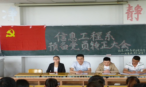 514,我系在1-315教室召开预备党员转正大会,信息工程系党政秘书、学生第一党支部书记邓超老师,2012级学生辅导员张志霞老师及全系共计79名学生党员参加了此次大会,会议由学生第一党支部副书记王政锐主持会议。
