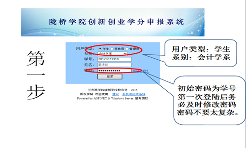 根据学院要求,为了更好的整理汇总创新创业学分,决定从2012级开始正式启用创新创业学分申报系统,请2012级、2013级、2014级同学抓紧时间登陆学院官网创新创业学分申报系统进行创新创业学分申报。