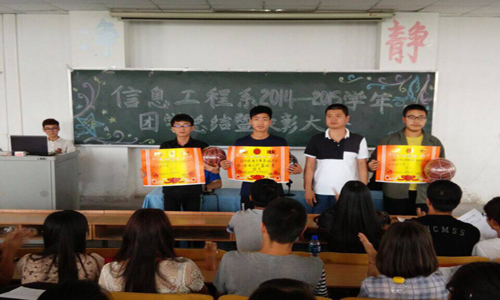 6月18日中午,信息工程系召开了2014—2015学年团学工作总结暨表彰大会。系党总支书记刘灿帅、辅导员邓超、张志霞老师和团总支学生分会成员及各班班委参加了大会。会议由团总支书记牛应才主持。