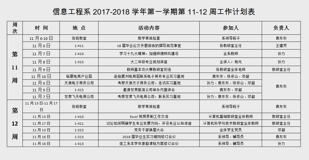信息工程系2017-2018学年第一学期第11-12周工作计划