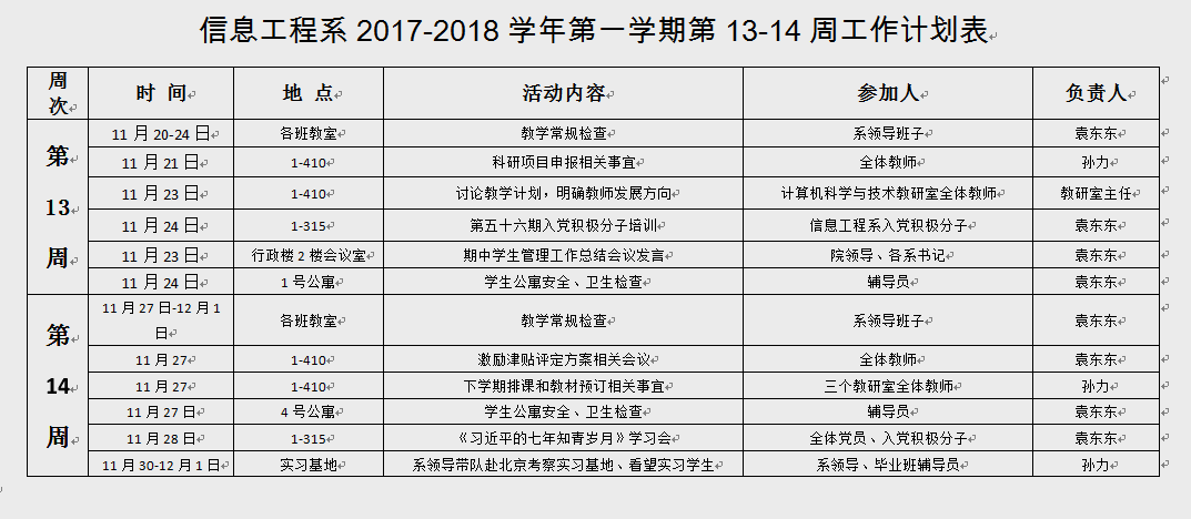 信息工程系2017-2018学年第一学期第13-14周工作计划