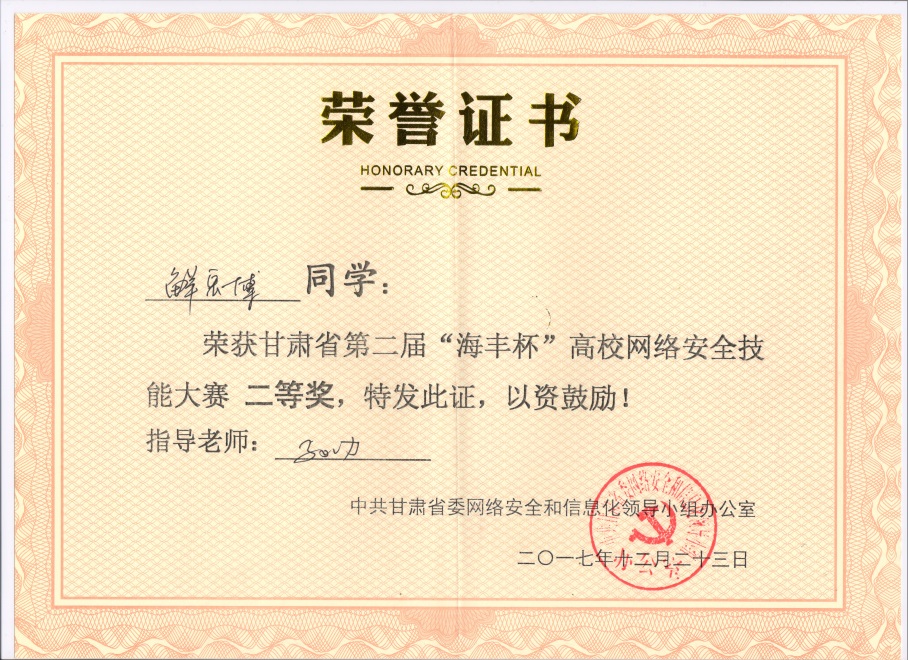 20171223日,由中共甘肃省委网络安全和信息化领导小组办公室、甘肃省工业和信息化委员会、中国信息产业商会信息安全产业分会主办的甘肃省第二届“海丰杯”高校网络安全技能大赛在甘肃政法学院成功举办。