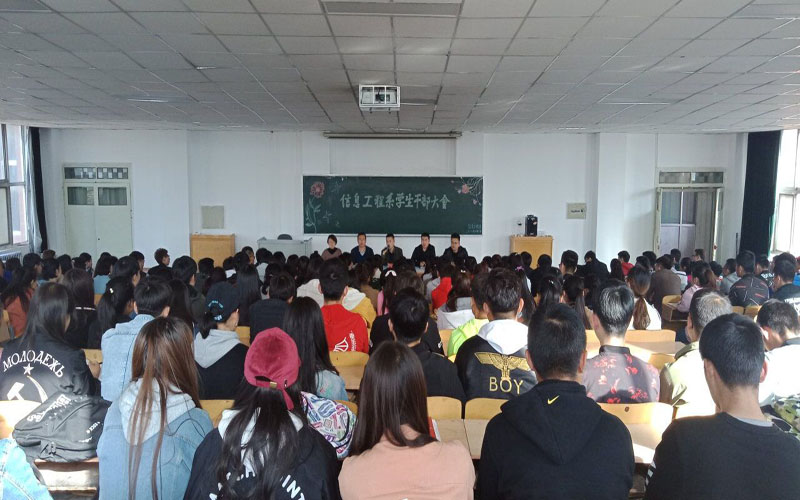4月8日下午,信息工程系召开全体学生干部大会。系主任孙力、党总支书记袁东东、全体辅导员及党团、班级学生干部共计150人参加了会议。