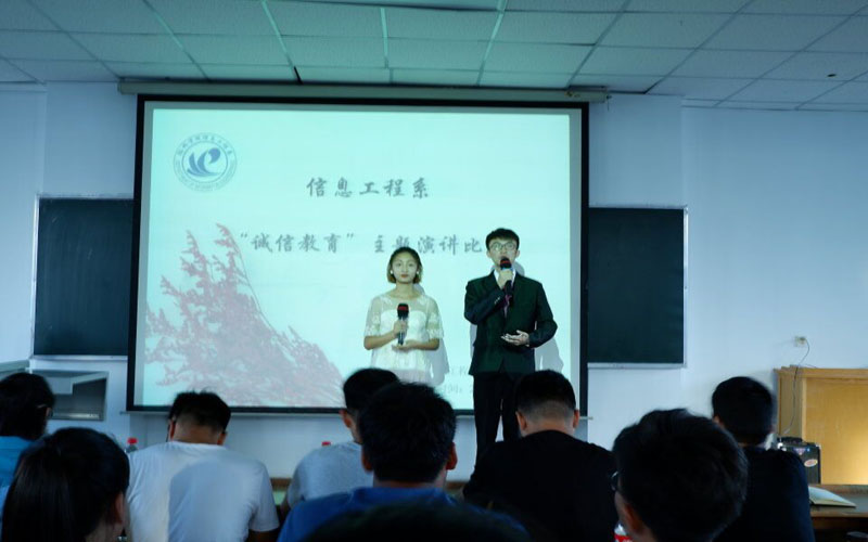 为贯彻落实学院党委关于在学生中开展诚信教育的实施意见要求,进一步培养学生的诚信行为,使学生在生活、学习工作中自觉养成重信誉、讲诚信的良好习惯,促进良好班风、学风的形成。信息工程系于6月28日晚在1号教学楼315教室举办“诚信教育”主题演讲比赛。