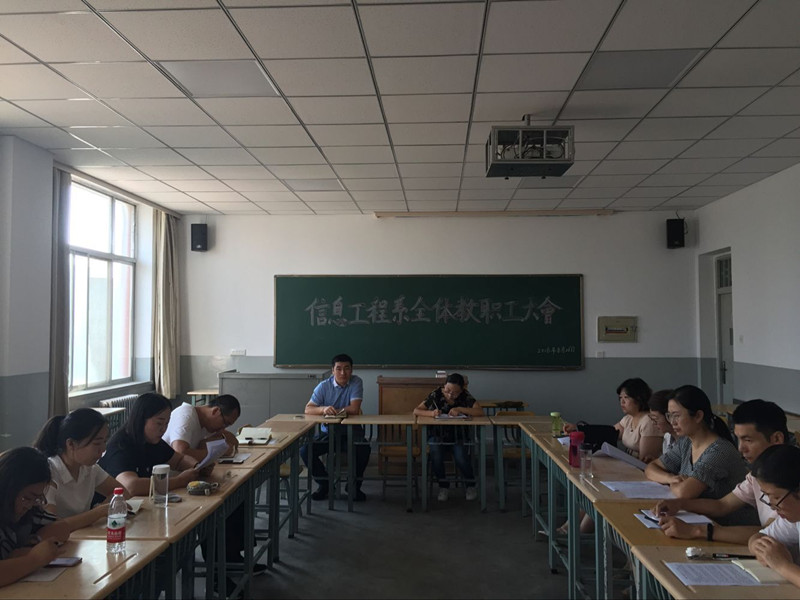826日上午,信息工程系召开了新学期全系教职工会议,将开学前的相关工作做了统一安排和部署,系党总支书记袁东东、教学副主任王建芳和全系教职工参加了会议。