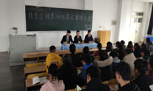 3月15日下午,信息工程系召开了2018级学风建设暨计算机等级考试冲刺动员大会,系领导孙力、袁东东,辅导员邓超及2018级全体学生参加动员会。
