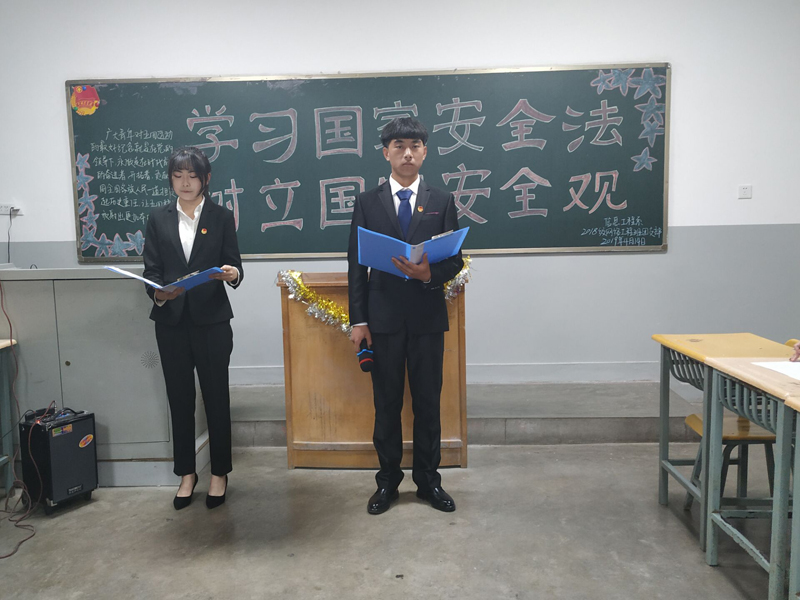 为深入学习宣传贯彻习近平新时代中国特色社会主义思想和总体国家安全观,教育广大团员青年坚定理想信念,忠诚党的事业,增强国家安全意识。4月14日晚,信息工程系各团支部在教室开展了以“学习国家安全法,树立国家安全观”为主题团会。