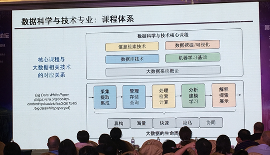 本次论坛有十多位来自大数据研究、教学与管理等方面的知名专家学者及产业界优秀代表做了精彩报告。报告内容主要围绕大数据专业人才培养在新形势下的现状、机遇与挑战,大数据产教融合的理念与实践,大数据的研究前沿与专业发展,大数据主流技术的研发进展等大数据教育领域的热点主题,从国内外等不同层面,从产、学、研等不同角度,从涵盖的不同深度与广度,阐述了大数据教育如何更好地服务于创新型人才培养的百年大计,服务于国家战略规划与产业布局。