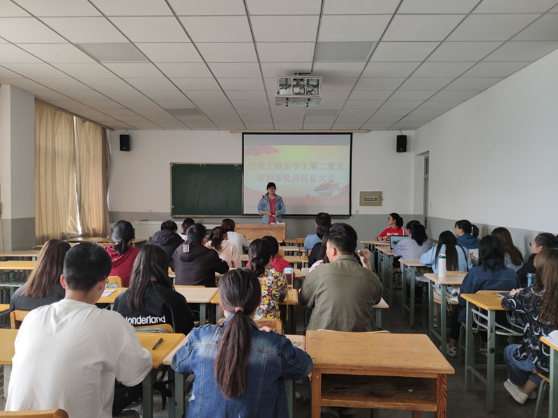 613,信息工程系党总支学生党支部召开了预备党员转正大会,学生第一党支部书记邓超、学生第二党支部书记牛应才及全系学生党员参加了此次大会。