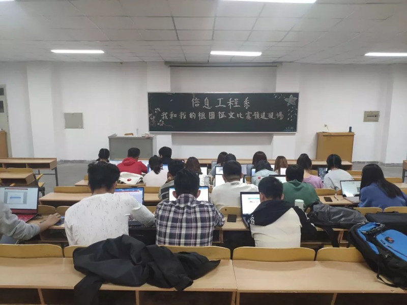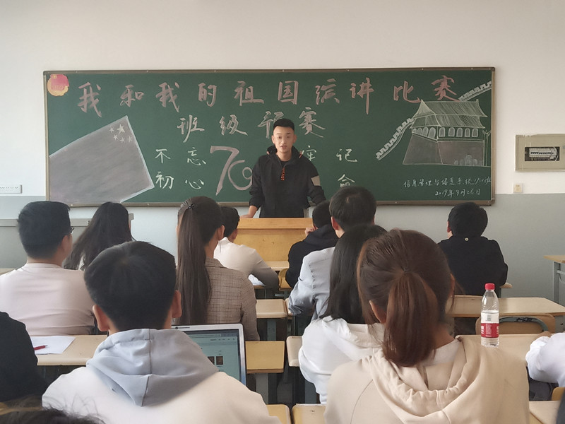 盛世华夏欢歌载舞喜迎国庆,莘莘学子歌声嘹亮歌唱祖国。为喜迎新中国成立七十周年,进一步激发青年学子的爱国主义热情,信息工程系组织各班级开展“我和我的祖国”为主题的演讲、征文等一系列庆祝活动,以表达对祖国母亲的深深热爱,用饱满的情感抒发自己的爱国情怀,用优美的语言书写对祖国无尽的祝福,用嘹亮的歌声歌唱祖国繁荣昌盛。
