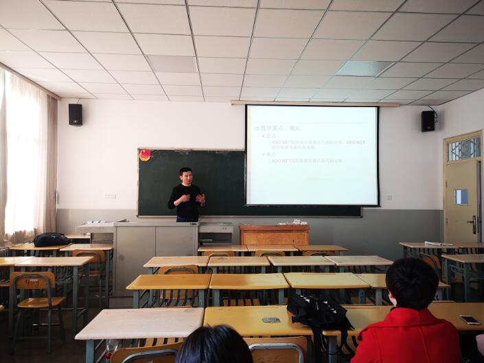 在本次教学观摩,于泳海老师讲授了《软件开发工具之ADO.NET数据库访问》,从ADO.NET基本概念、.NET中可视化数据库工具、第一个数据库应用程序、.NET数据库访问过程几个方面对该部分内容进行了讲解。于老师授课准备充分,图文并茂,逻辑清晰,安排合理,对于ADO.NET数据库访问该部分内容进行了细致讲解,教学效果良好。本次教学观摩得到了其他教师的肯定和认可,在授课结束后老师们展开了热烈的讨论,并积极提出建议和意见。