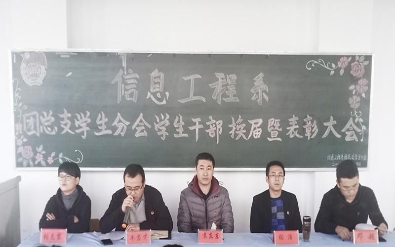 11月14日下午,信息工程系召开团学干部换届暨表彰大会,系党总支书记袁东东、系主任助理张浩、全体辅导员及所有学生干部参加了本次大会,会议由团总支书记牛应才主持。