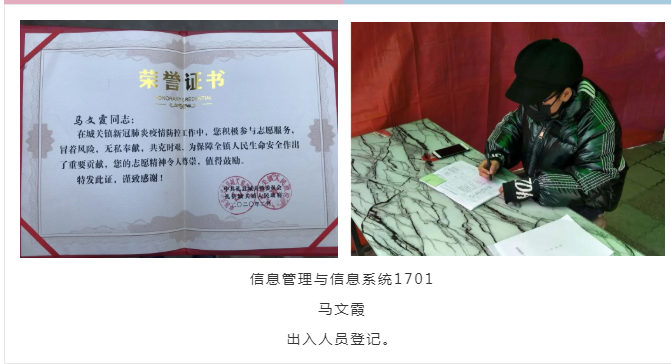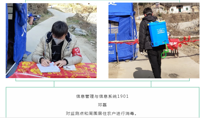 疫情防控,是一场没有硝烟的战争。这场战“疫”中,信息工程系学子弘扬“奉献、友爱、互助、进步”的志愿服务精神,积极投身到疫情防控工作中,他们放弃寒假休息,毅然投身于防疫前线服务。他们身穿“黄马甲”红马甲”守在农村村口、小区门口,宣传防疫知识、测量体温、消菌杀毒。他们对进出过往人员及每一辆车上的人员进行体温检测并询问其来路与去向;他们逐户进行登记排查;他们每日对公共区域进行消毒;宣传疫情防护知识,等等,这样的防护排查工作,一站就是一天。不计回报、不求利益,全凭一份信念和一腔热血,前后相续、接力奉献地冲在战疫的最前线。
