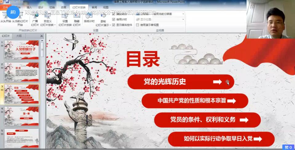 根据学院党委安排,信息工程系党总支于56-15日分别组织2020年上半年入党积极分子和拟发展对象进行集中培训。