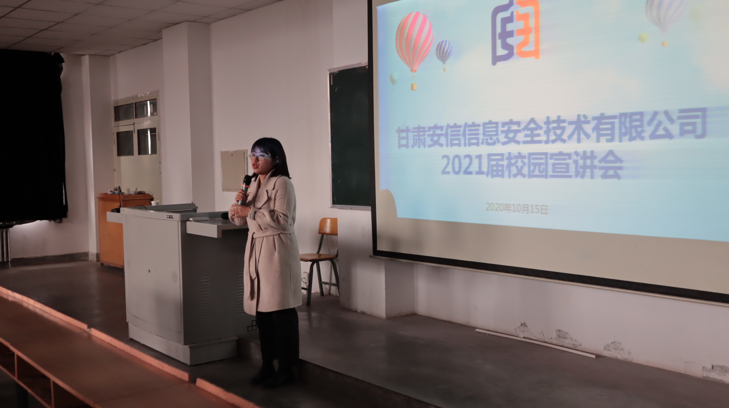1015日,我系邀请甘肃安信信息科技有限公司来校举办专场招聘会,信息工程系2020届毕业生参加了本次招聘。