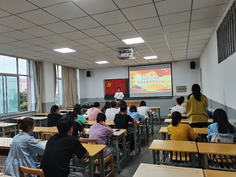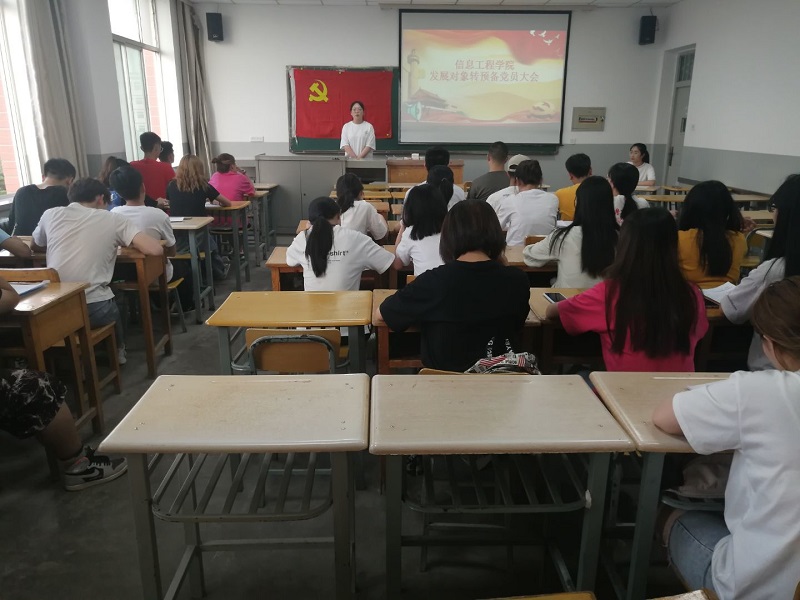 618,信息工程学院党总支学生党支部在一号楼410召开了接收预备党员大会,信息工程学院第一党支部书记姚圆红、学生第二党支部书记郭治民及全院共计33学生党员参加了此次大会。