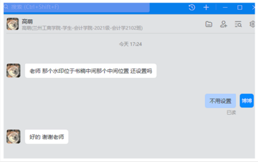为了保证教学的正常有序开展,基于网络平台,采用“课上(直播教学)+课下(钉钉、微信交流)”的混合教学方式,通过QQ,钉钉,微信等即时通信软件解决学生实际问题,为同学答疑解惑,指导完成实验操作。实现了“教师不停教、学生不停学”,尽可能的做到“一个都不落下”。