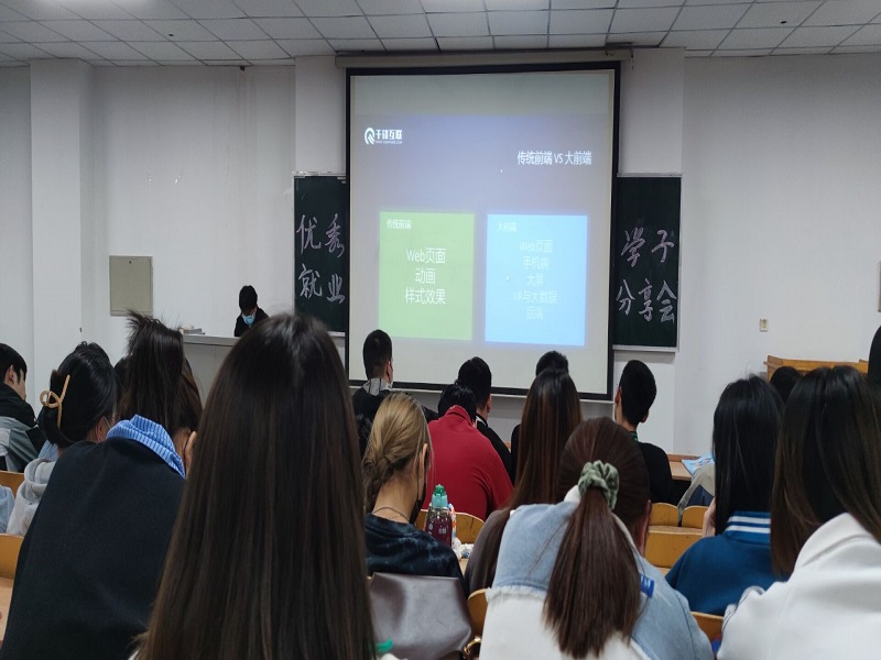 会上,企业HR就互联网行业人才需求及就业形势做了分析,在互联网行业发展日新月异,新技术层出不穷的时代,同学们一定要注重实践应用能力,要将理论知识高效的转化到编程开发中等实践应用中去,不断提高自身的专业技能;入职北京汉克时代杭州分公司的电子商务1801班王晓玉同学(转正后薪资为12.5K),她详细分享了自己的就业观念、就业选择及就业经验,希望学弟学妹们要充分认识到就业是一件厚积薄发的事情,大学期间一定要多考取专业相关的资格证书,尤其是计算机软考、华为HCIP认证等证书,强化专业课的理论基础,在大四的时候要尽早步入社会,在工作岗位上锻炼自己的专业技能,虚心学习,才能找到自己真正适合的就业岗位;入职中国移动通信集团甘肃有限公司的计算机科学与技术(专升本)2001班魏钰同学,希望各位学弟学妹在就业时切记自视过高、好高骛远,同时也要有十足的自信,通过言语表达与专业技能,向面试官展现更好的自己。