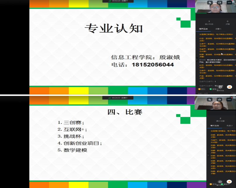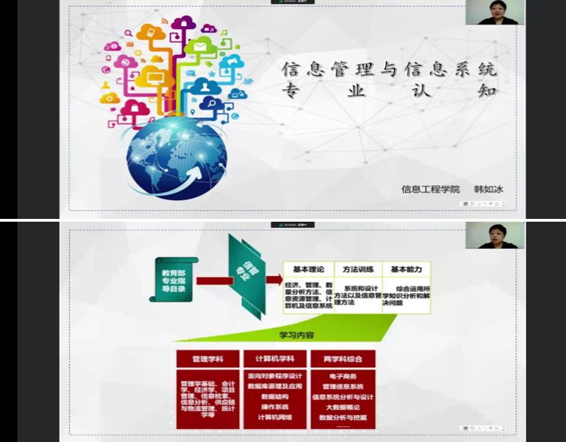 为了让2022级新生对自己的专业有全面、深刻的认识,树立专业信心,更好地做出专业学习规划,2022年9月5日-8日,我院以线上直播的形式对22级新生开展了专业认知教育,管理科学与工程教研室殷淑娥、韩如冰老师,计算机科学与技术教研室张鑫老师分别根据专业设置及发展方向,对电子商务、信息管理与信息系统、计算机科学与技术三个专业做了全面细致的介绍。