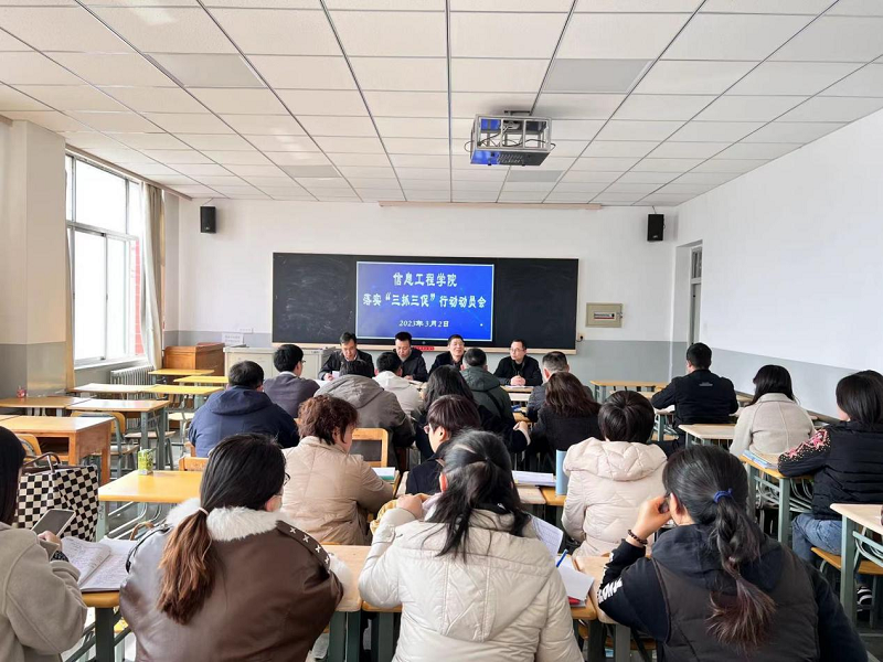 3月2日,信息工程学院召开“三抓三促”行动动员会,认真传达学习学校“三抓三促”行动动员部署会议精神,并结合学校教师“三热爱”教育提出要求。