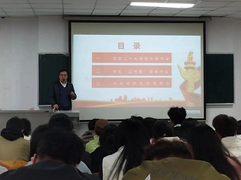 开班仪式后,院党委书记张计强做了“学习二十大,落实‘三热爱’,争做新青年”主题报告,从充分认识党的二十大精神的重要意义,深刻领会党的二十大精神的主要内容,完整准确贯彻落实好党的二十大精神和学校“三热爱”教育等几个方面,为同学们做了一场精彩的开班第一课。