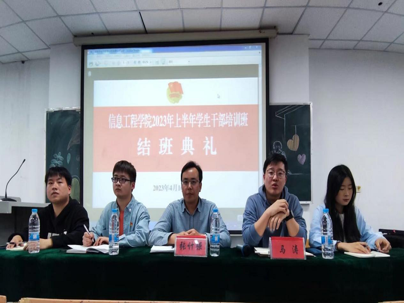 416日下午,博学315教室举行了信息工程学院2023年上半年学生干部能力提升培训班结班仪式,学生干部代表李琛同学谈了个人学习体会,团总支书记马涛老师就培训情况做了总结。仪式上,为学生干部颁发了信息工程学院学生干部认定证书。