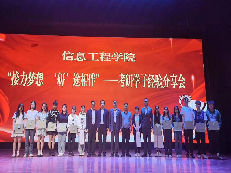 为进一步传承考研奋斗精神,激发考研热情,帮助学生明确考研方向,了解考研技巧,519日,信息工程学院在学术报告厅举办“接力梦想、‘研’途相伴”考研学子经验分享会学院领导班子成员、考研指导教师代表、辅导员、2023届成功上岸的15名学生及202020212022级学生代表出席。本次活动特邀319级考研成功上岸的学生代表和1名正在攻读研究生代表他们帮助同学们拨去云雾,为考研备战指点迷津。