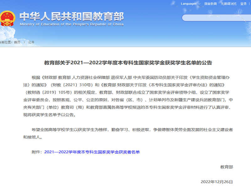 荣获2021-2022学年国家奖学金