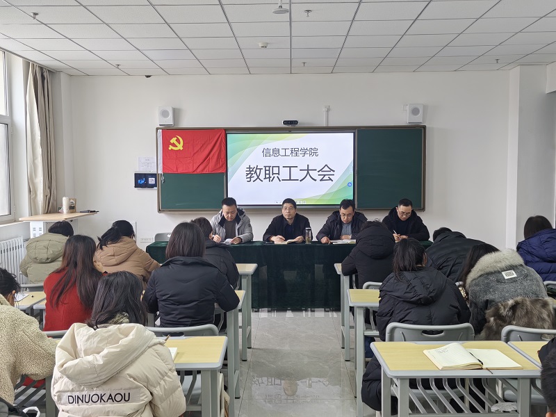 春风浩荡万象新,砥砺奋进正当时。为进一步统一思想、明确目标、突出重点、压实责任,确保新学期各项工作顺利开展,31日下午,信息工程学院在综合教学楼A708召开新学期教职工大会,学院领导班子及全体教职工参加此次会议,教学院长杨光主持会议。