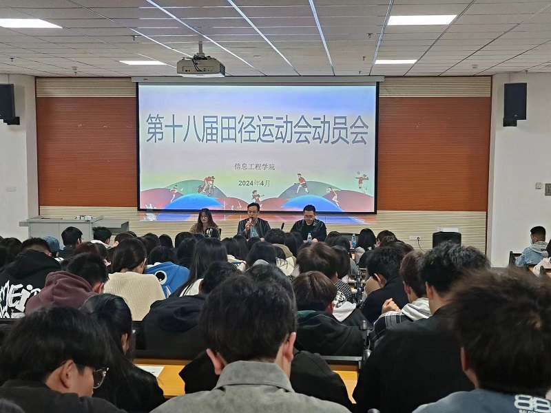 为全力迎接学校第十八届田径运动会,充分调动广大学生参与度,激发学生的运动热情,信息工程学院于4月6日晚在综合教学楼C504教室召开了第十八届田径运动会动员会,全面吹响了备战运动会的号角。