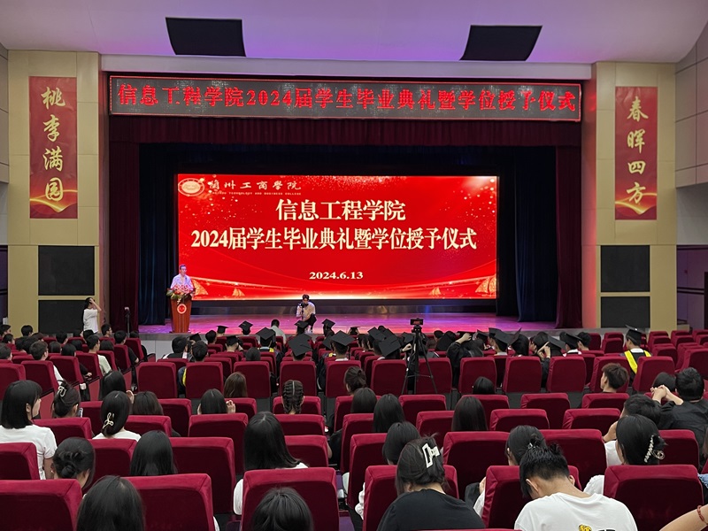 6月13日上午,信息工程学院2024届学生毕业典礼暨学位授予仪式在学术报告厅举行。学院学位评定委员会成员、教师代表及2024届毕业生参加典礼。典礼由党委书记兼行政院长张计强主持。
