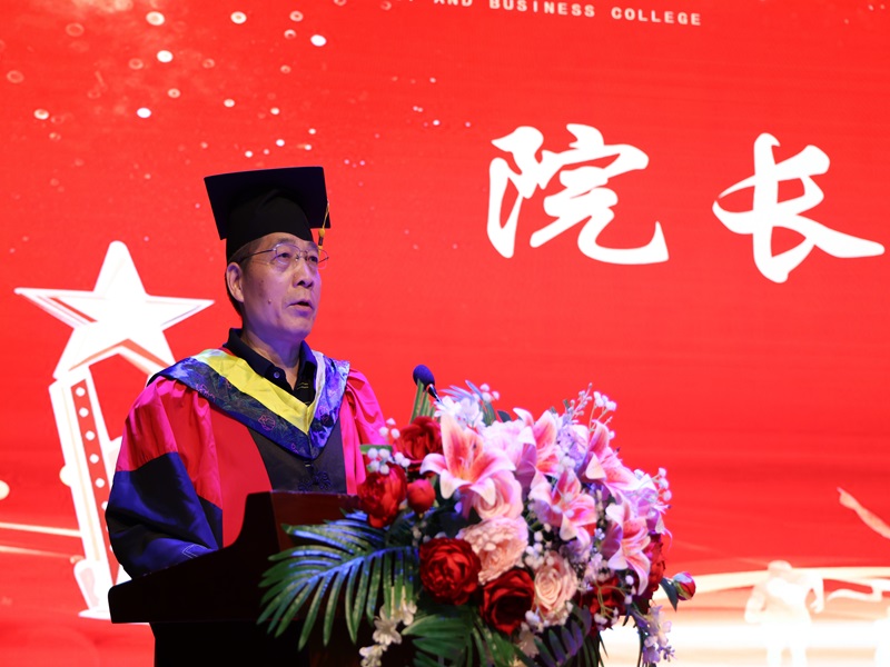 在庄严的国歌声中,毕业典礼拉开帷幕。学院院长韩金仓教授在致辞中向毕业生们表达了最诚挚的祝贺,并对他们在校期间取得的成绩给予了高度评价。他勉励大家,要坚守初心,勇担使命。无论将来从事什么工作,身处什么岗位,都要牢记自己的责任和使命,把个人的理想追求融入到国家和民族的事业中,为实现中华民族伟大复兴的中国梦贡献自己的力量;要不断学习,追求卓越。毕业不是学习的终点,而是新的起点。在这个快速发展的时代,只有不断学习,才能跟上时代的步伐,才能在激烈的竞争中立于不败之地;要始终保持乐观、积极向上的心态。人生的道路不会一帆风顺,会遇到各种困难和挫折。在面对困难和挫折时,保持乐观的心态,坚定信心,勇往直前。相信自己,只要坚持不懈,就一定能够克服困难,实现自己的目标。