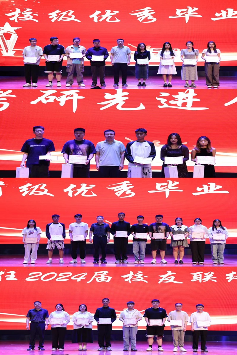 学院党委书记兼行政院长张计强宣读省级和校级优秀毕业生、考研先进个人表彰决定,宣读2024届校友联络员聘任决定。随后,学院领导班子依次为优秀毕业生、考研先进个人颁发证书及奖品,为校友联络员颁发聘书。