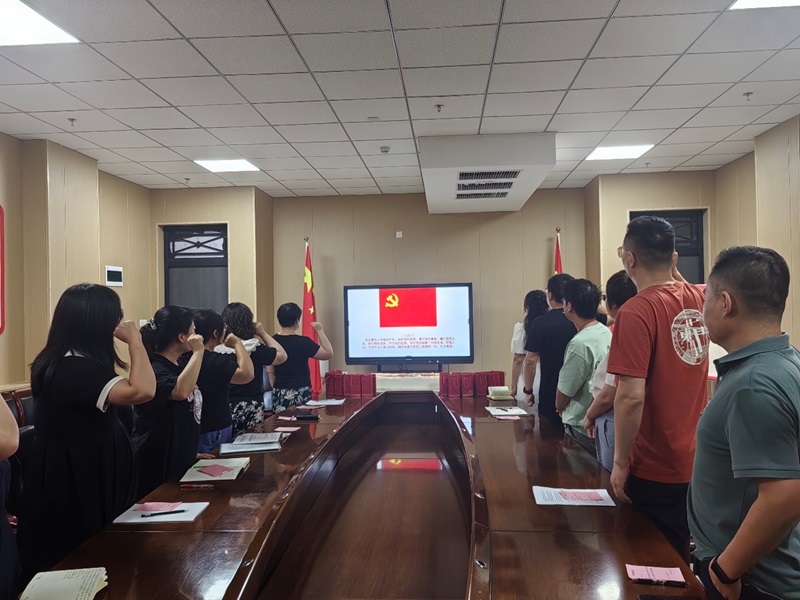 接着,韩书记带领全体党员重温入党誓词。举拳宣誓,一句句铿锵有力的誓词,表达对党的无限忠诚和投身教育事业的坚定决心。随后,党员代表姜力玮和张鑫老师发言,回顾党的光辉历程、感悟党的初心使命,分享自己入党以来的心路历程和取得的成绩。
