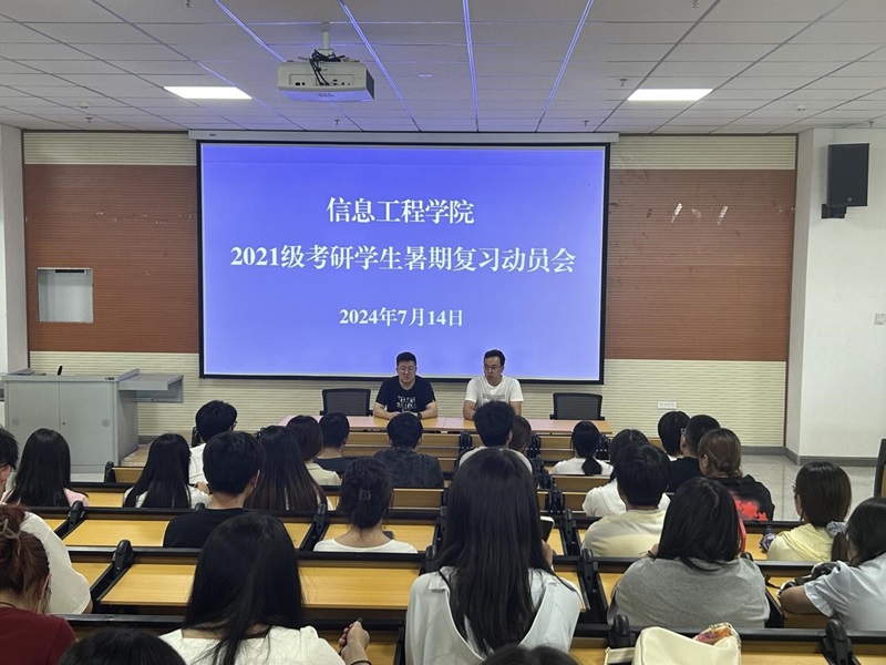 为进一步激发2021级考研学生暑期备战热情,7月14日下午,信息工程学院在综合教学楼C504教室召开2021级学生暑期考研复习动员会。学院党委书记兼行政院长张计强、2021级辅导员及全体考研学生参加会议。