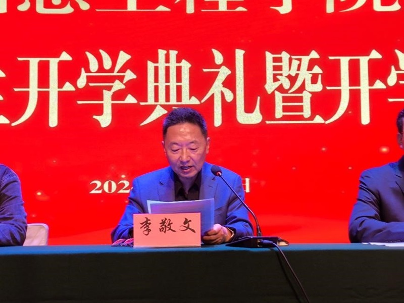 随后,学院院长李敬文教授致欢迎辞,并对同学们提出四点期望与嘱托:一是要胸怀大志,志存高远。作为信息工程领域的新生力量,要树立远大的理想和抱负,将个人的发展与国家的需求、社会的进步紧密结合起来;二是要勤奋学习,打牢基础。要深入钻研专业课程,不断提升自己的专业技能,积极参与实习、实践活动,培养自己的动手能力和解决实际问题的能力;三是要勇于创新,敢于实践。要积极参加各类学科竞赛、科研项目和创新创业活动,在实践中锻炼自己的创新思维和实践能力;四是要学会合作,共同成长。要积极参与团队活动,培养自己的团队精神和协作能力,在团队中共同成长、共同进步。最后,李院长深情寄语全体学子:“持之以恒,不懈奋斗,是通往梦想彼岸的必经之路。无论遇到何种挑战与困难,请坚信,你们终将跨越,让梦想照进现实。”