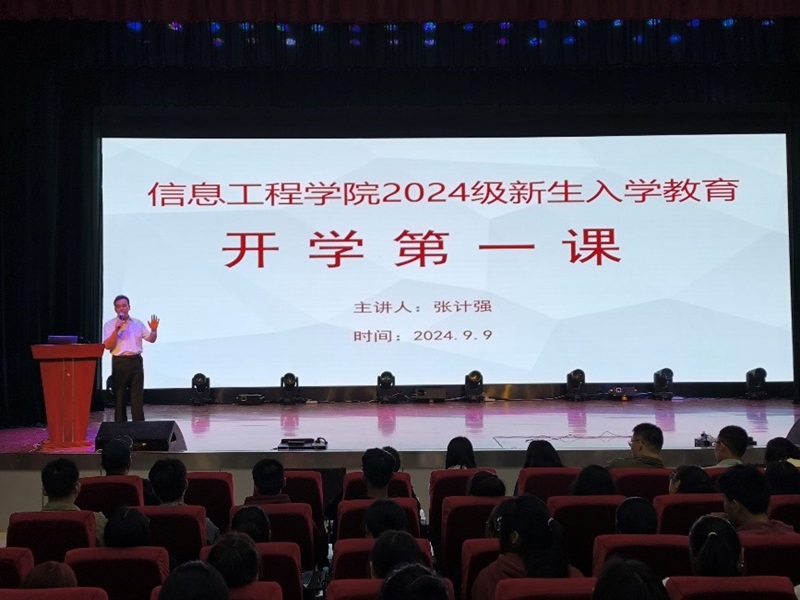 时序更替,华章日新。9月9日上午,信息工程学院在学术报告厅隆重举行了2024级新生开学典礼暨开学第一课。学院领导班子、全体辅导员以及2024级500余名新生参加了典礼,典礼由党委书记兼行政院长张计强主持。