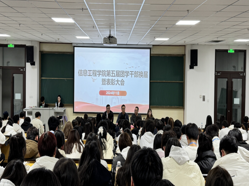 11月24日晚,信息工程学院在综合教学楼C504教室隆重举行了第五届团学干部换届暨表彰大会,标志着学院团学工作迈入新的阶段。此次大会旨在表彰过去一年中表现突出的团学干部和集体,同时为新一届团学干部队伍的组建拉开序幕,激励全院青年学生为实现中华民族伟大复兴的中国梦贡献力量。