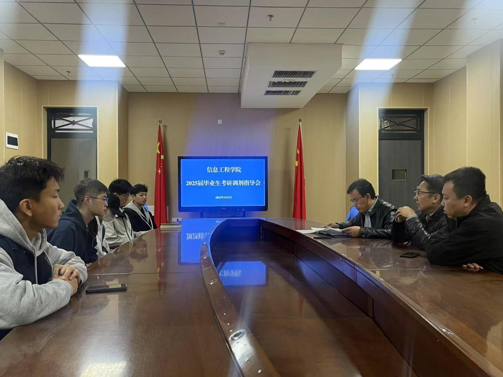 在考研复试结果陆续放榜,调剂关键期来临之际,为切实帮助考研学子把握升学机遇、精准应对调剂挑战,4月2日上午,信息工程学院召开了2025届毕业生考研调剂指导会。学院院长、教学院长、专业课教师、辅导员及6名考研上线学生参加,会议由学院党委书记兼行政院长张计强主持。