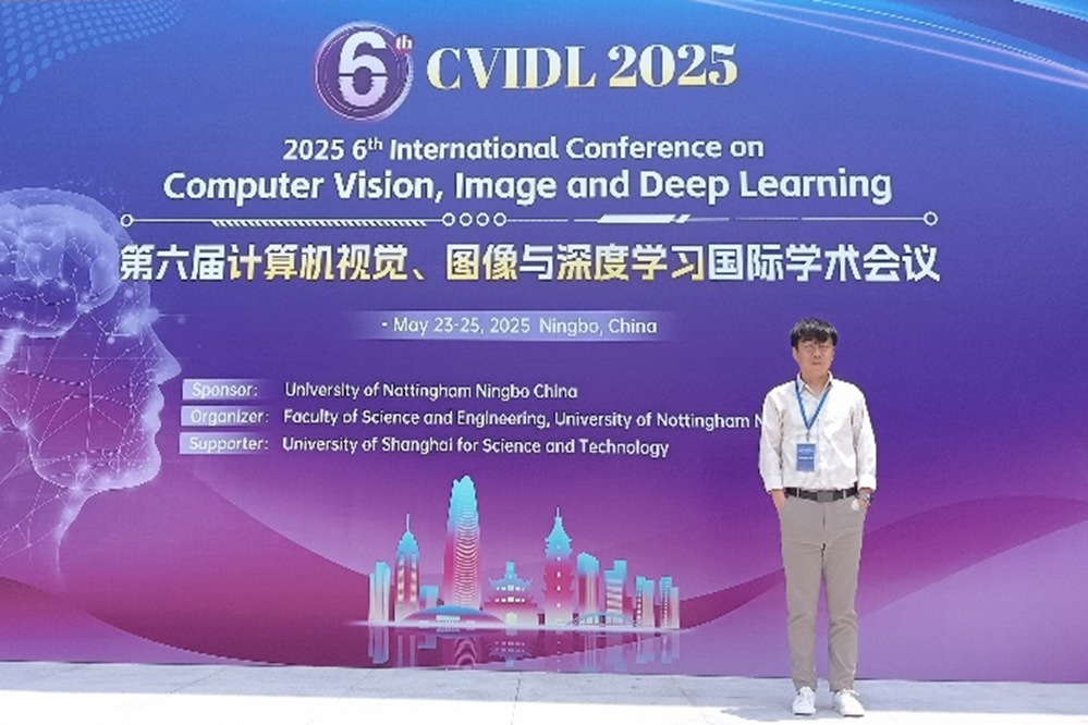 2025 年 5 月 23 日至 25 日,由宁波诺丁汉大学主办的第六届计算机视觉、图像与深度学习国际学术会议(CVIDL 2025)圆满收官。超 150 位来自全球顶尖高校、科研院所及行业领军企业的专家学者汇聚,共同探讨领域前沿技术与未来趋势,推动学术与产业深度融合。我院喇秉军老师深度参与此次盛会。
